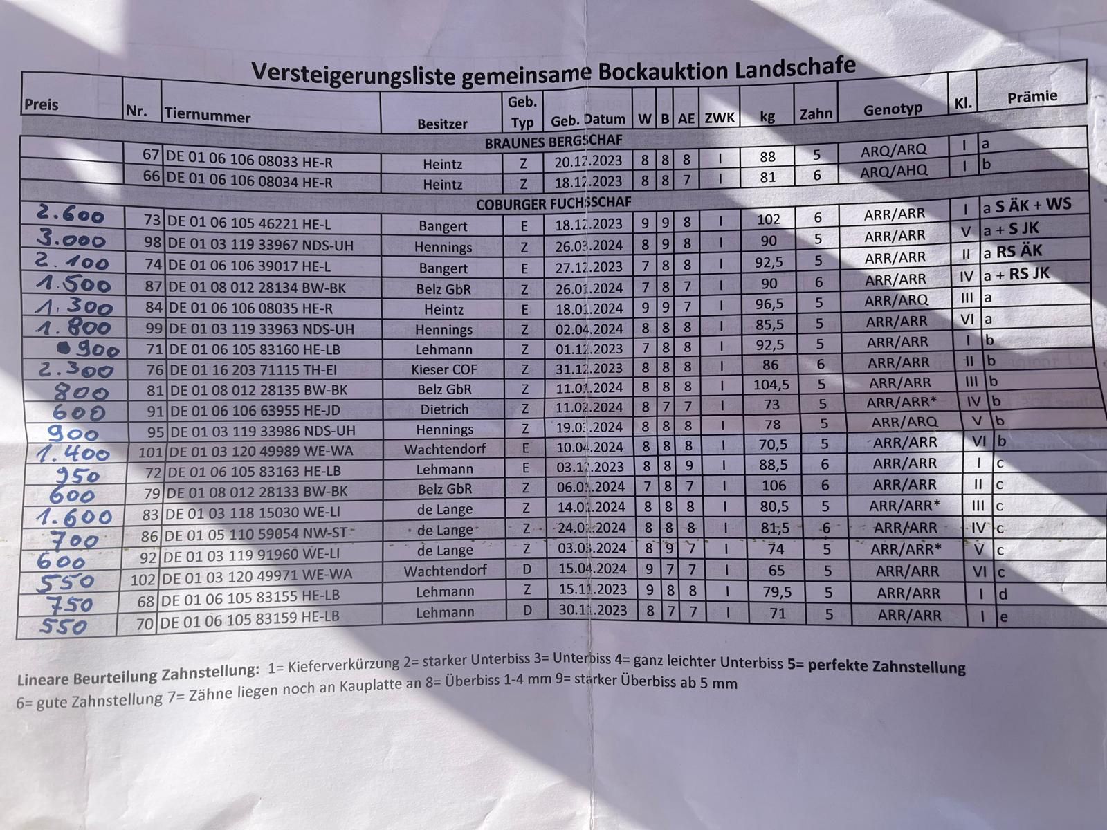 - Auktionsverlauf: zuerst die gemeldeten Jungschafe, danach die Zuchtböcke der Coburger Fuchsschafe und der Rhönschafe beginnend mit den älteren Böcken