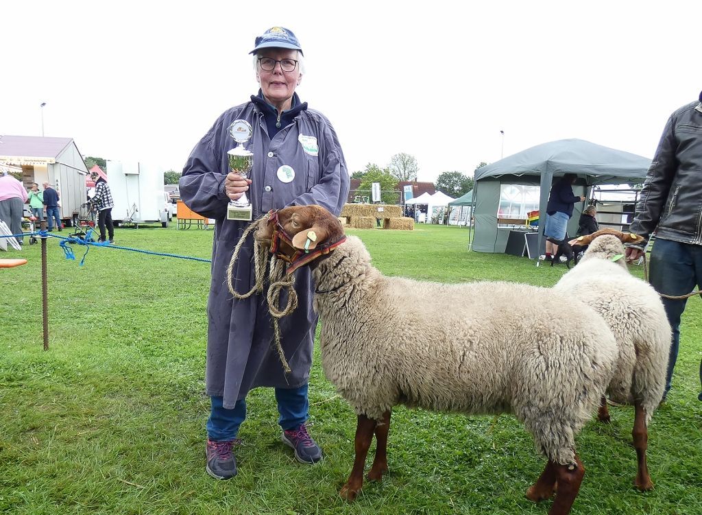 Die Wollsieger-Pokale konnten für den Bock „Raudi“ von Havemann-Onnen mit der Kat.-Nr. 5 (Auch bester Bock) und die Kat.-Nr. 71 von Wachtendorf überreicht werden.